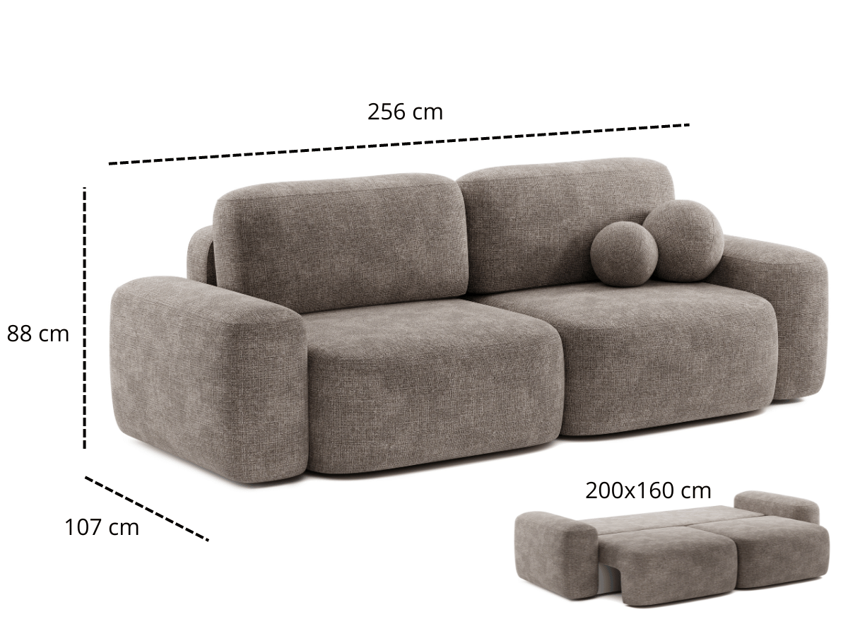 Canapé 3 places convertibles formes arrondies avec coussins boules - BOLD