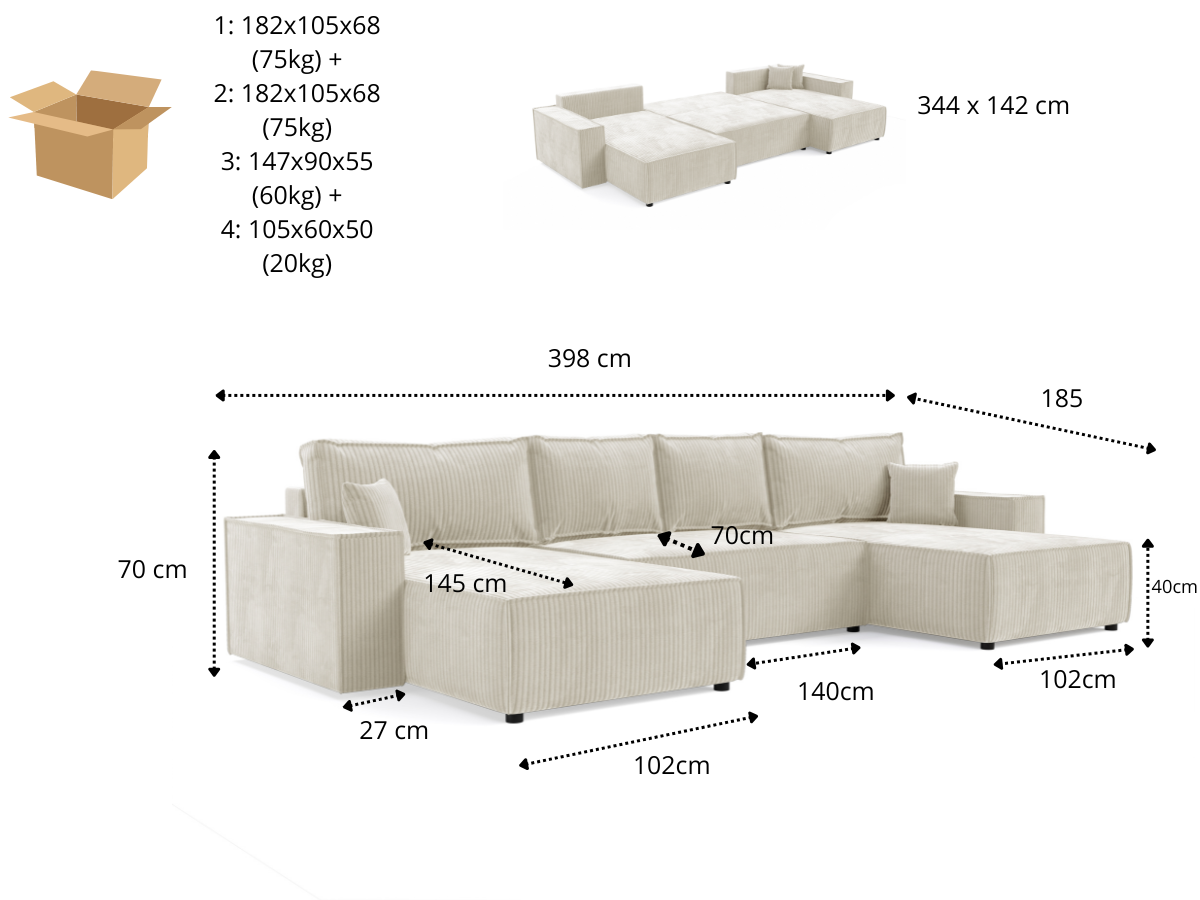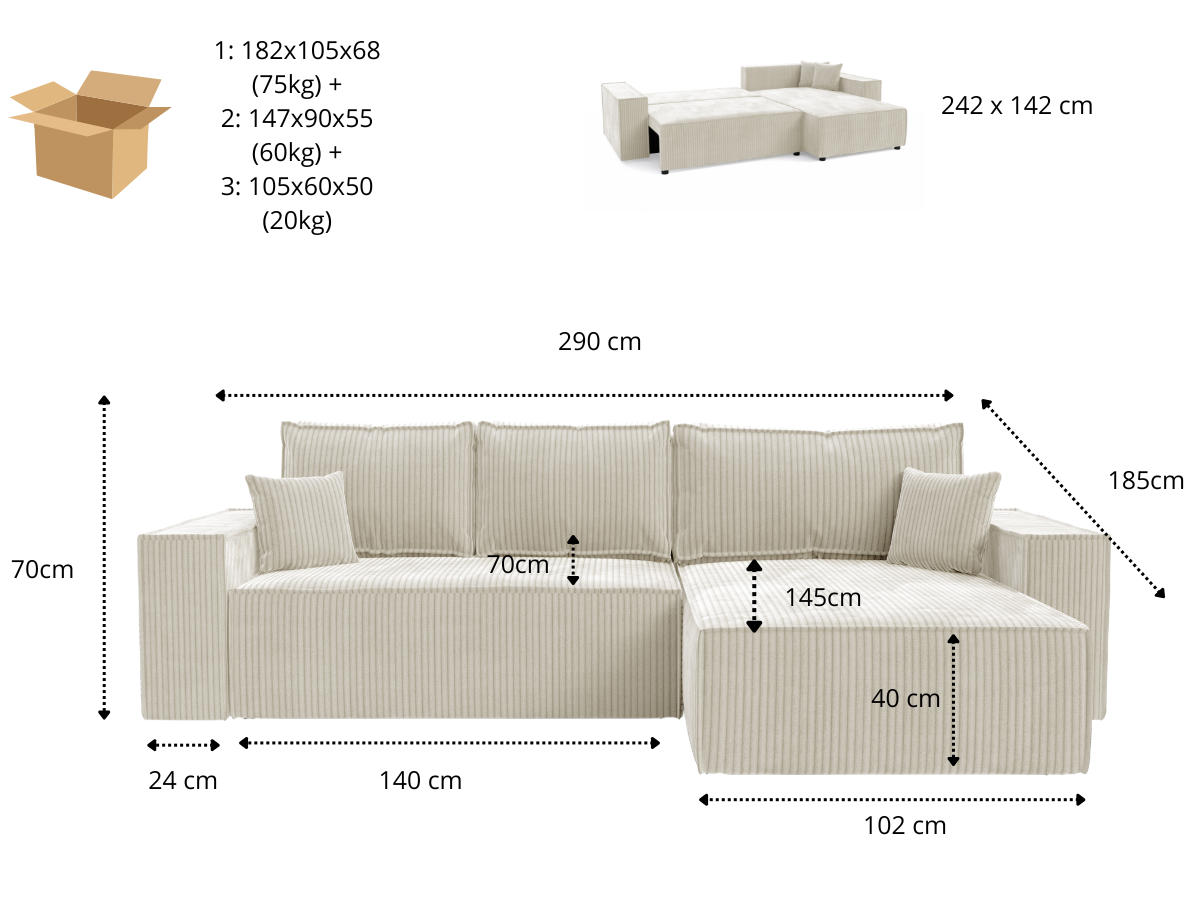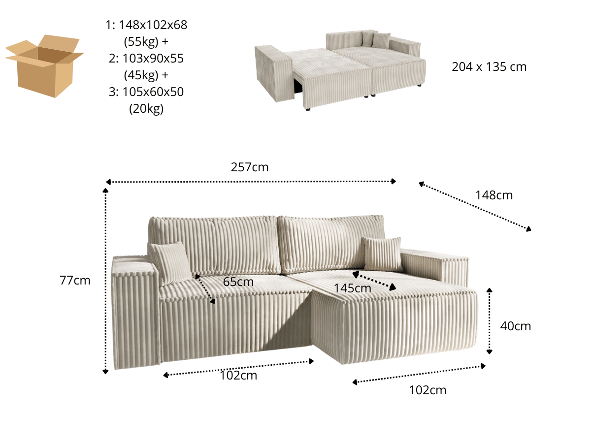 Le canapé velours côtelé Rivoli combine parfaitement design raffiné, confort et praticité, le tout avec une fabrication européenne de haute qualité. Son format convertible offre la flexibilité idéale pour accueillir vos invités, transformant votre salon en un espace de couchage en un clin d'œil.