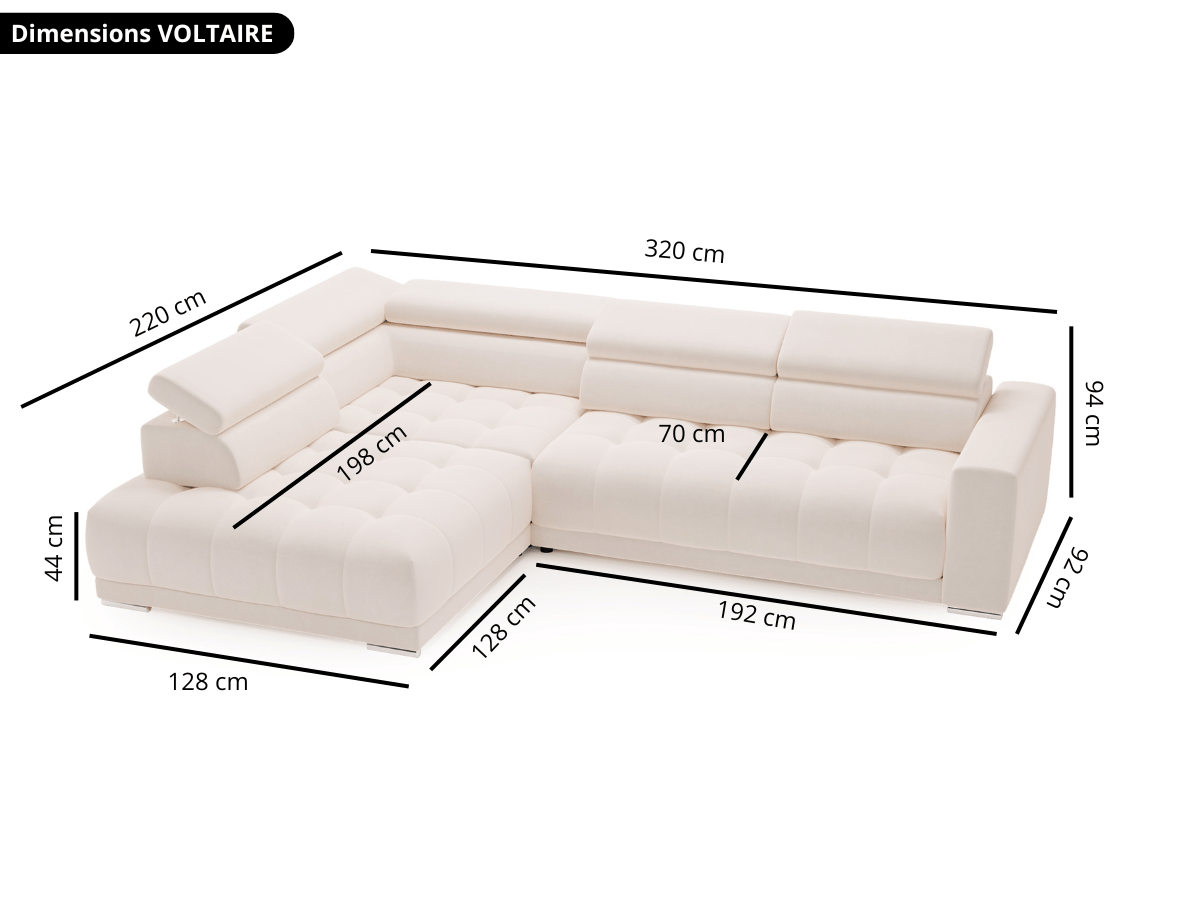 Dimensions généreuses : Avec ses 317 cm de largeur et 224 cm de profondeur, le Voltaire offre un espace spacieux pour se détendre en famille ou entre amis.