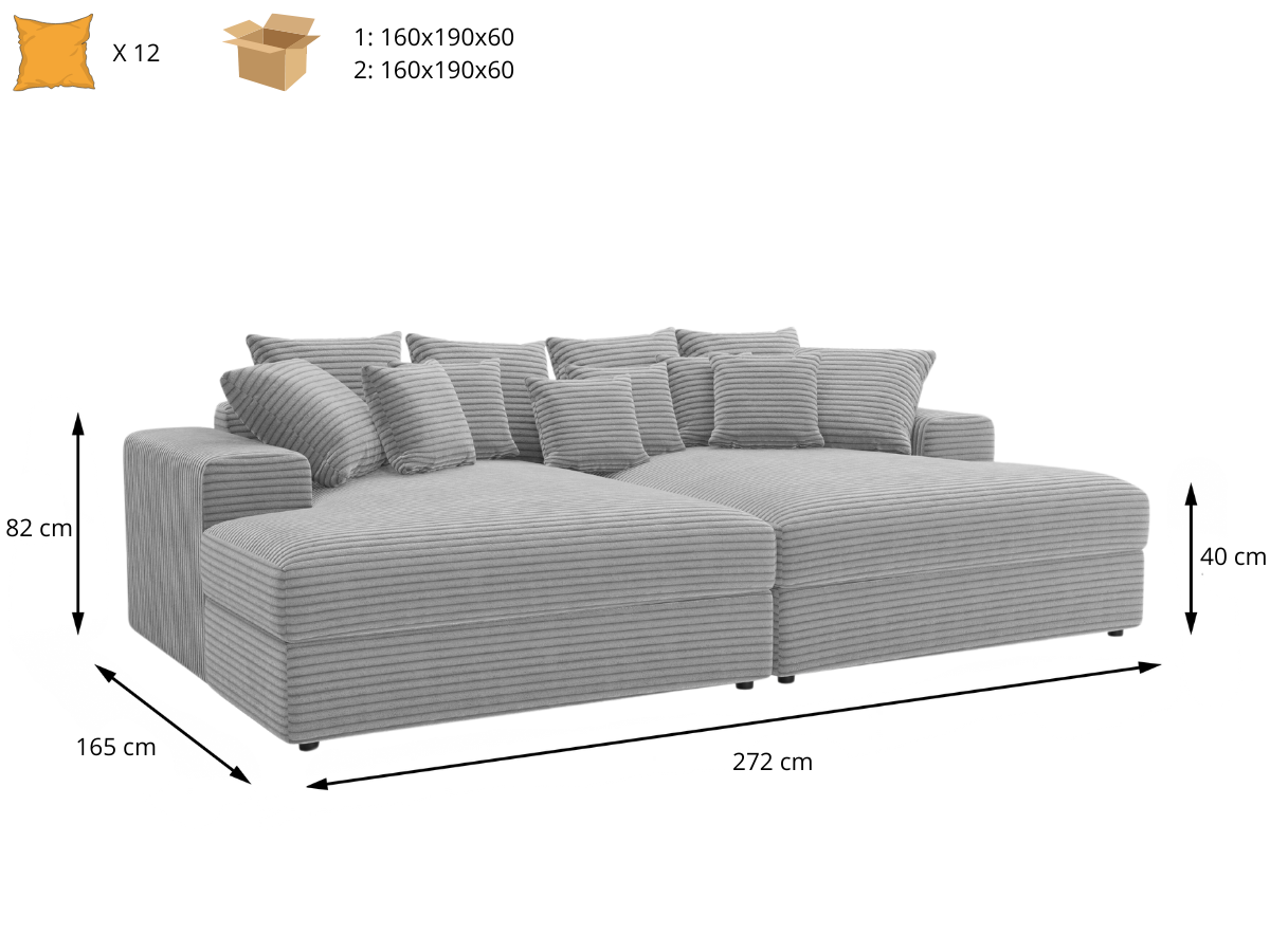 Le canapé Opéra XL est conçu pour un confort ultime avec une profondeur exceptionnelle de 140 cm (165 cm au total), parfait pour s'allonger ou même comme lit d'appoint pour deux personnes. Avec une longueur de 2,72 mètres, ce canapé spacieux est idéal pour les moments de détente en solo ou les soirées conviviales. Profitez d’un espace généreux et accueillant, qui allie confort extrême et élégance pour sublimer votre intérieur.