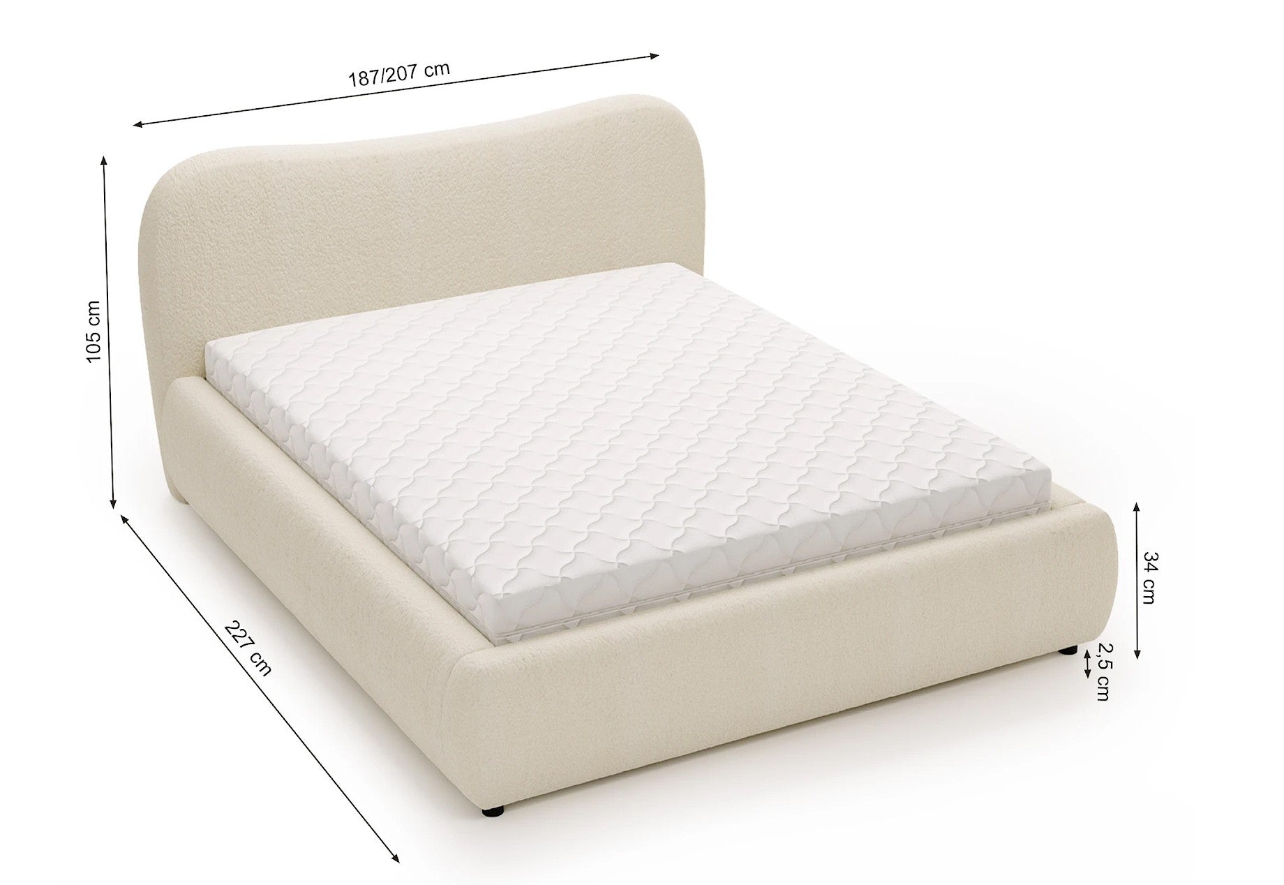 Les tailles disponibles, 160x200 et 180x200, et le choix de tissu bouclé tendance, font du Lit Inès une pièce centrale à la fois fonctionnelle et esthétiquement plaisante.