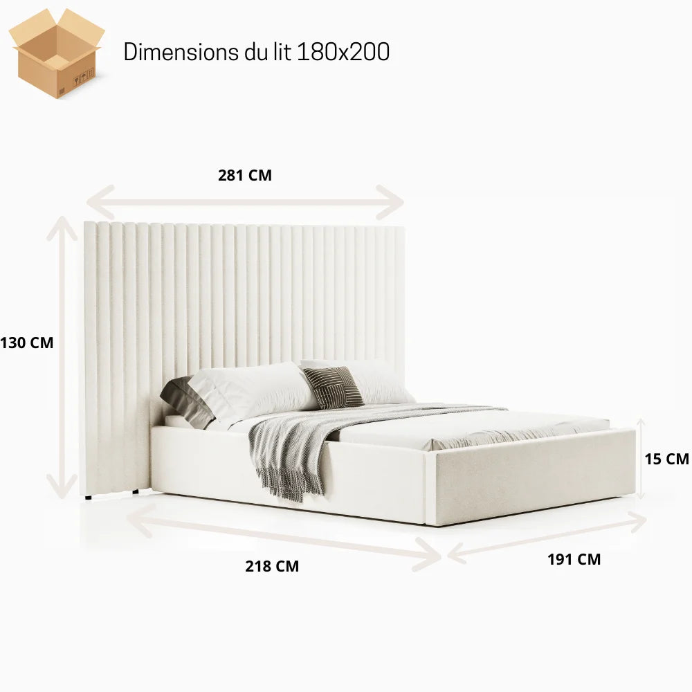 Disponible en tissu bouclé ou tissu côtelé, ce lit se décline en tailles 160x200 et 180x200, s'adaptant ainsi parfaitement à divers espaces et styles de décoration.