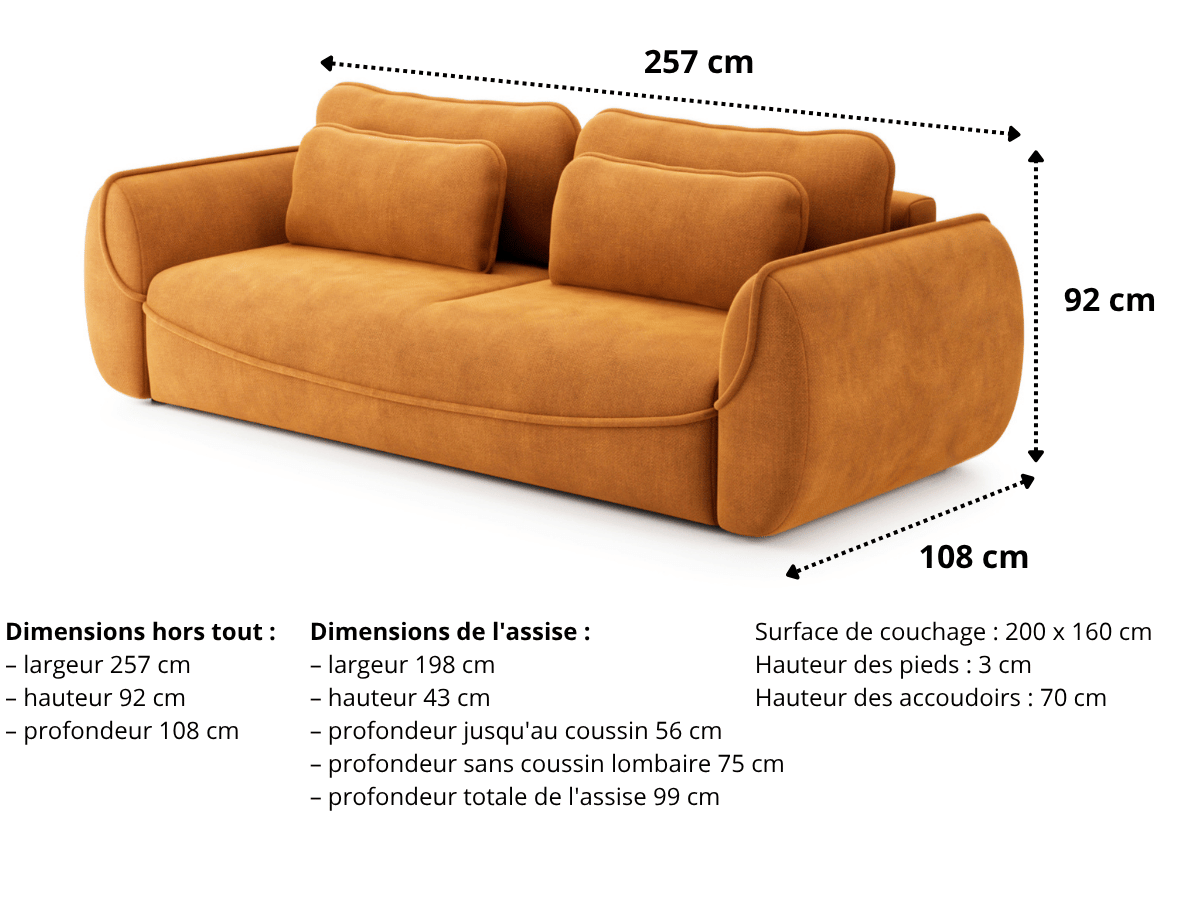 Le canapé Marais se transforme en lit 2 places ultra confortable grâce à son mécanisme convertible de type DL, simple et fluide à manipuler. En quelques secondes, il offre une surface de couchage généreuse de 200 x 160 cm, parfaite pour accueillir vos invités avec tout le confort nécessaire. Le système repose sur une assise à ressorts ondulés et une mousse PU haute densité (30 kg/m³), assurant un maintien équilibré et une sensation de confort aussi bien en position assise qu’en version lit.
