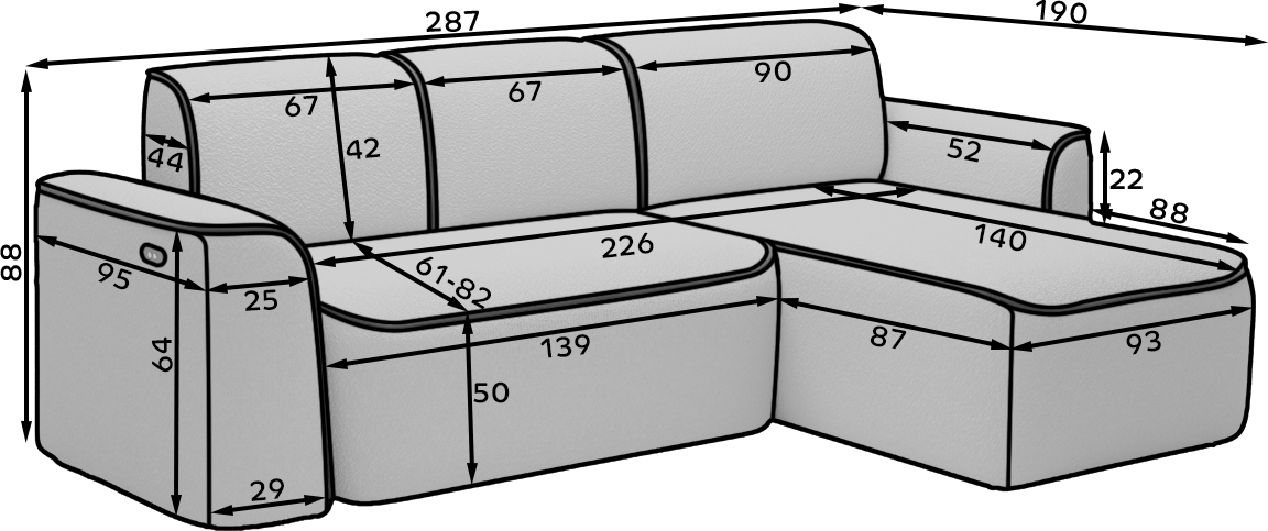 Canapé d'angle convertible électrique tissu boucle LUMIA
